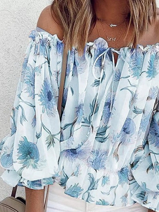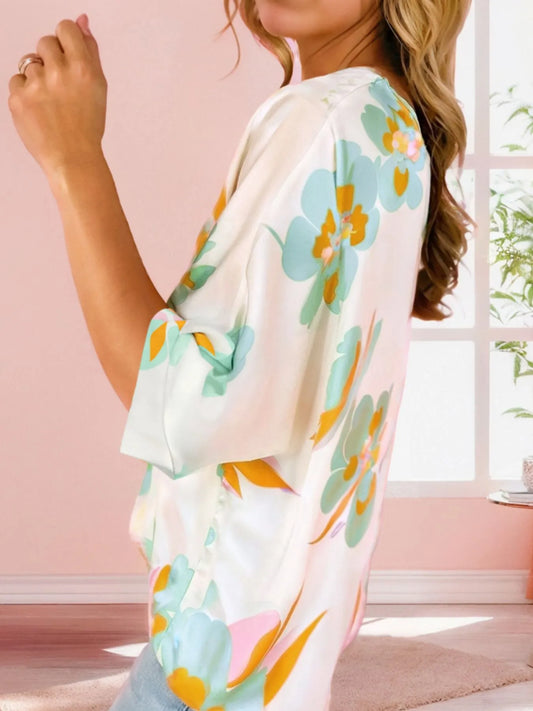 Floral Print Loose Fit V Neck Half Sleeve Blouse