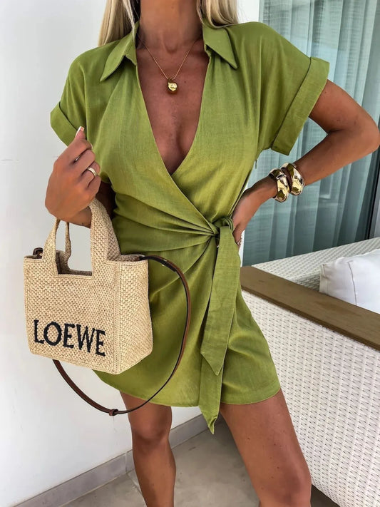 Lime 'N' Chili Collared Button Down Romper with Tie Belt