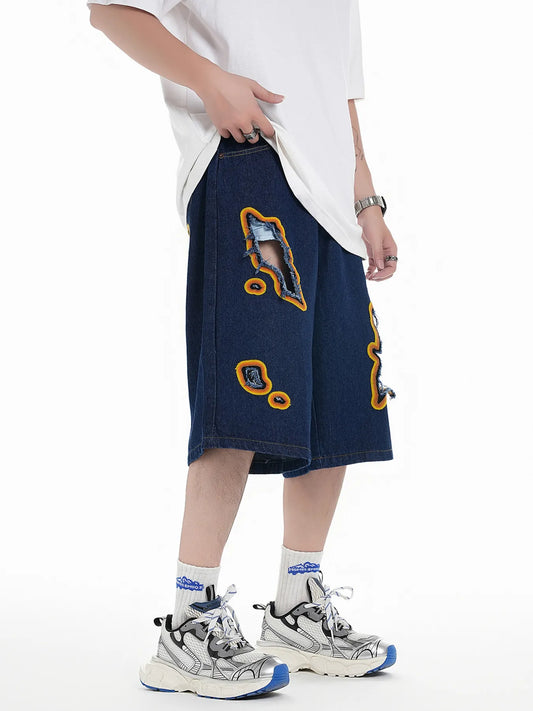 Men's Distressed Loose Fit Denim Shorts