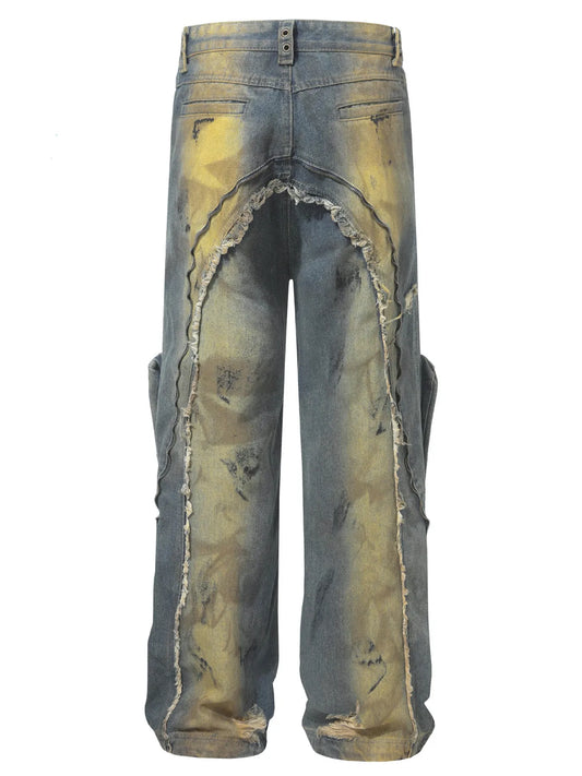 Men's Distressed Cargo Jeans with Artistic Ripped Design