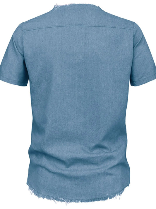 Men's Full Size Classic Raw Hem Short Sleeve Denim Top Plus Size