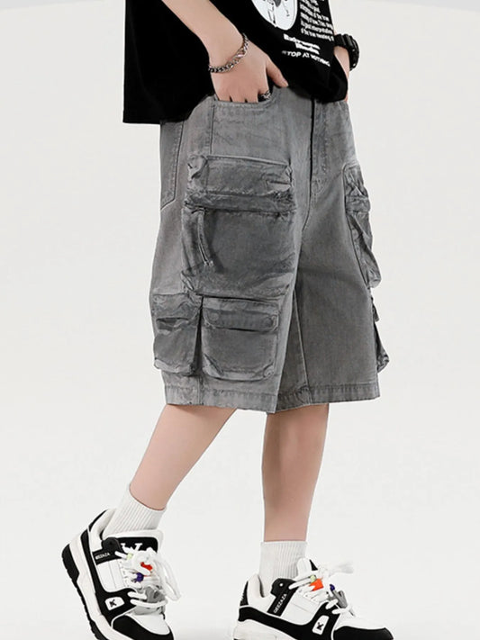 Men's Wide Leg Cargo Denim Shorts