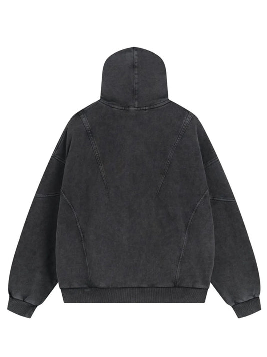 Men's Washed Zip Up Long Sleeve Hooded Jacket