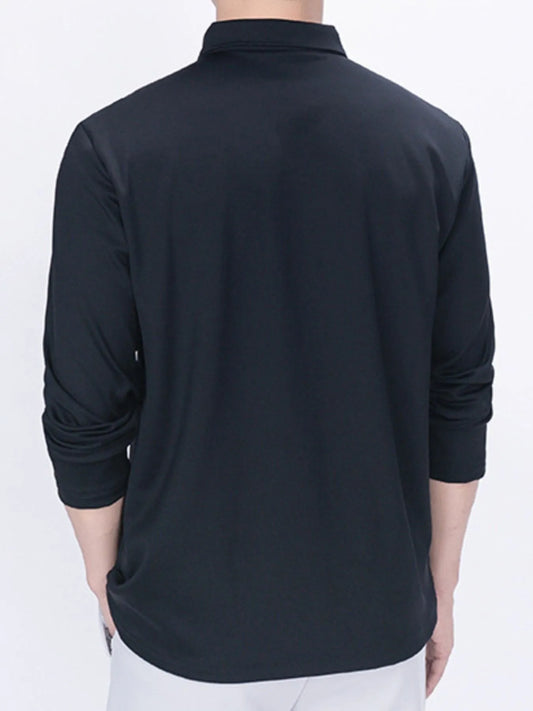 Men's Full Size Classic Collar Long Sleeve Polo Plus Size