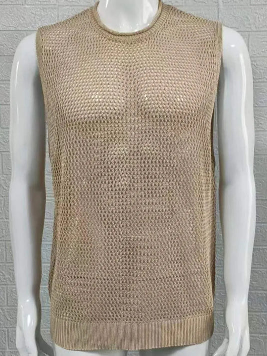 Men's Round Neck Sleeveless Eyelet Knit Top