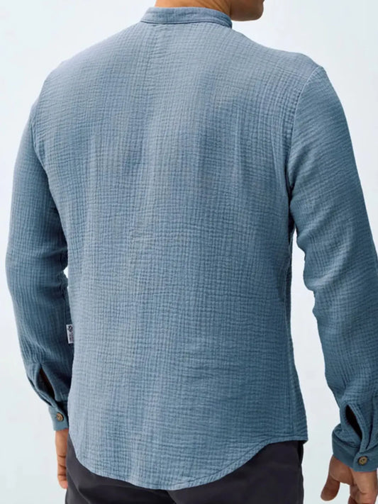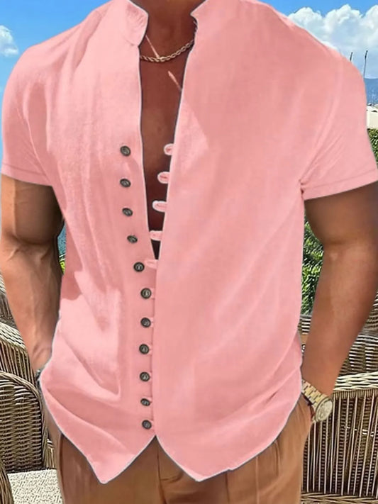 Men's Full Size Linen Button-Down Mandarin Collar Shirt Plus Size