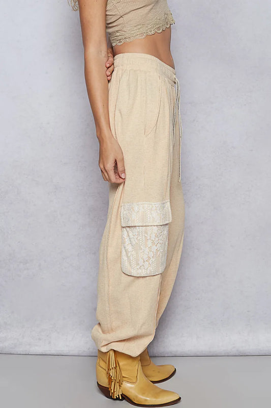 POL Floral Cargo Wide Leg Pants with Lace Drawstring