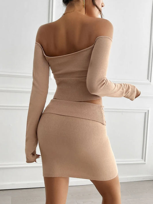 Ribbed Long Sleeve Top and Skirt Knit Set