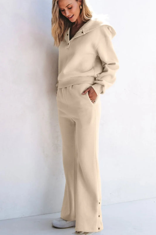 Half Snap Long Sleeve Hooded Top and Pants Set
