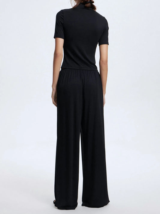 Pocketed V-Neck Top and Wide Leg Sweater Set