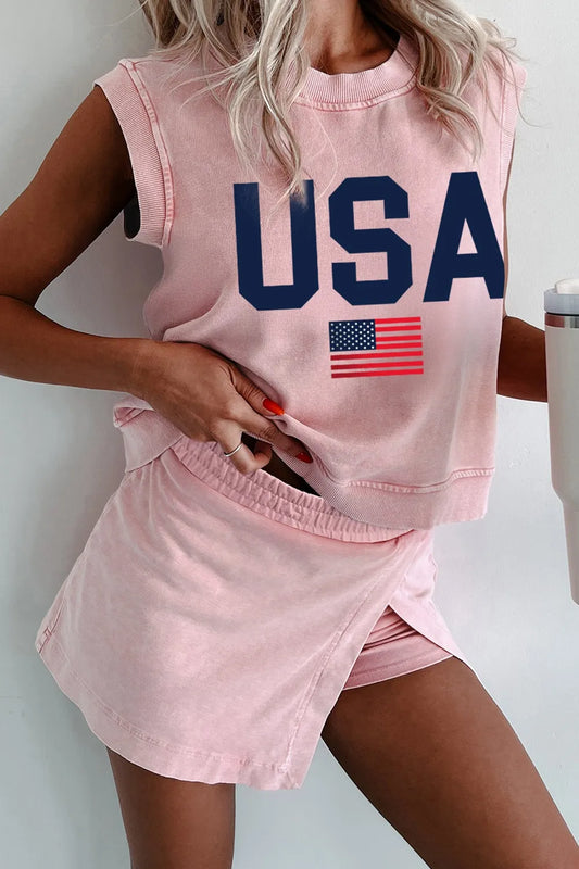 Contrast Scalloped Trim Sleeveless Top and Skirt Set