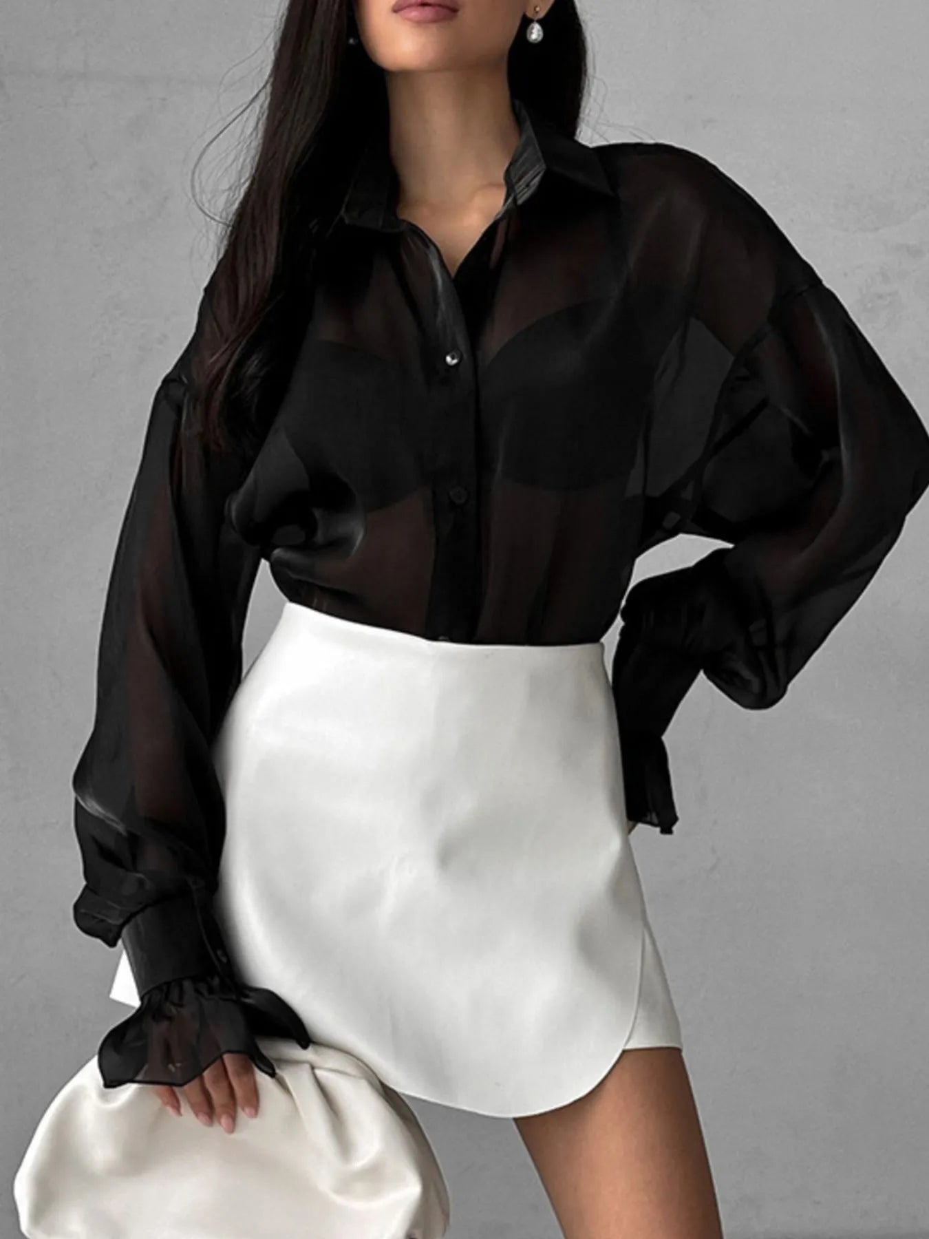 Button Up Flounce Sleeve Shirt
