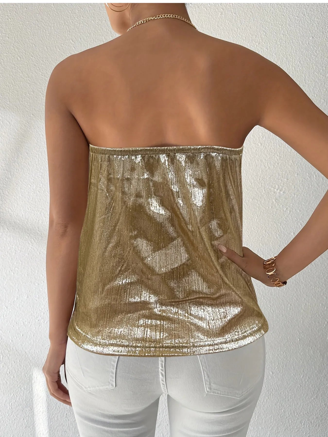 Chain Strap Halter Cowl Neck Cami