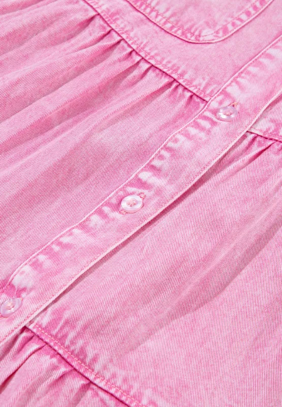 Collared Neck Button Down Mini Denim Dress