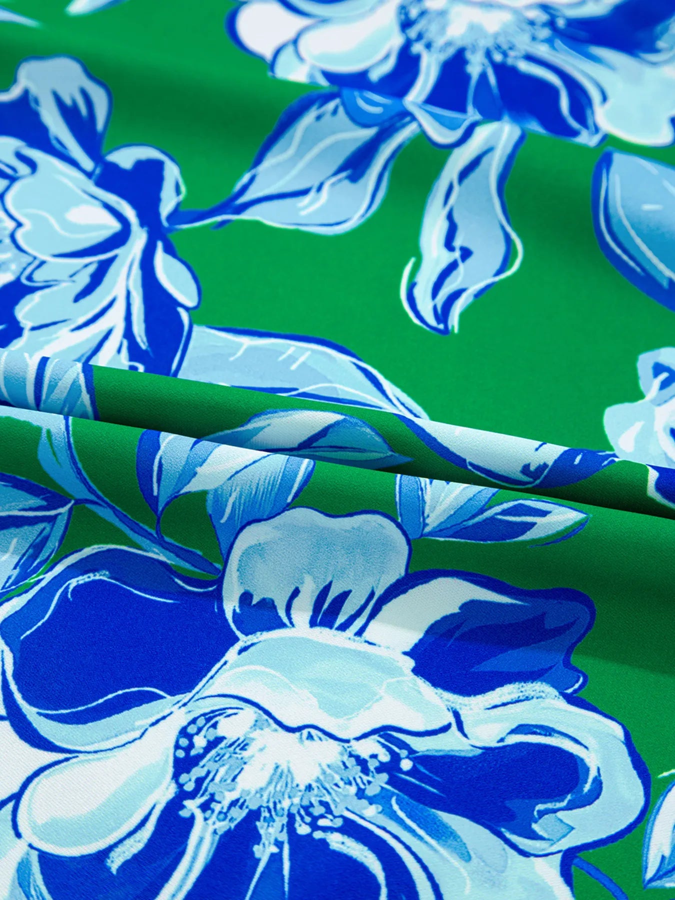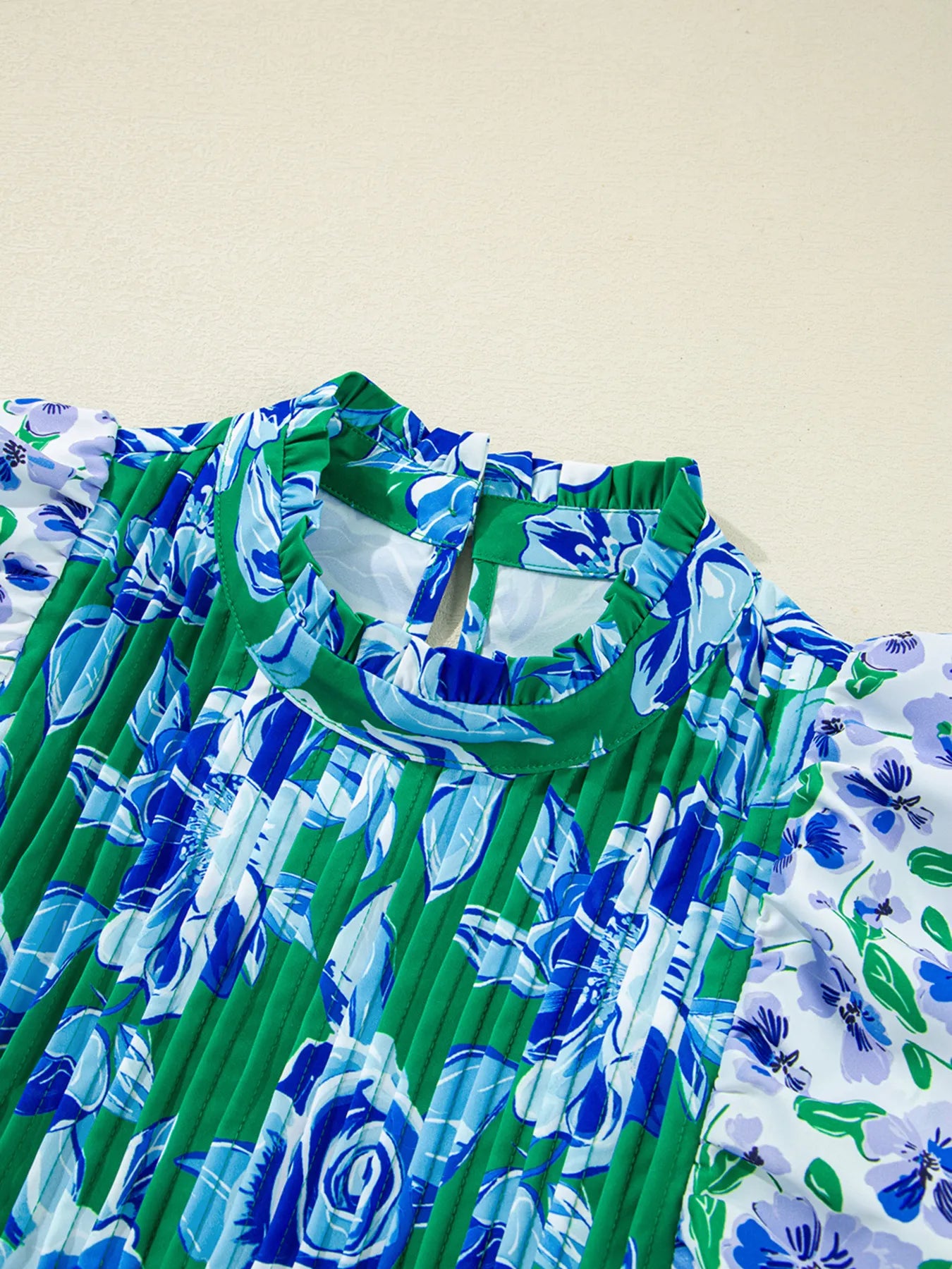 Floral Lace Trim Contrast Ruffle Sleeve Pleated Loose Blouse