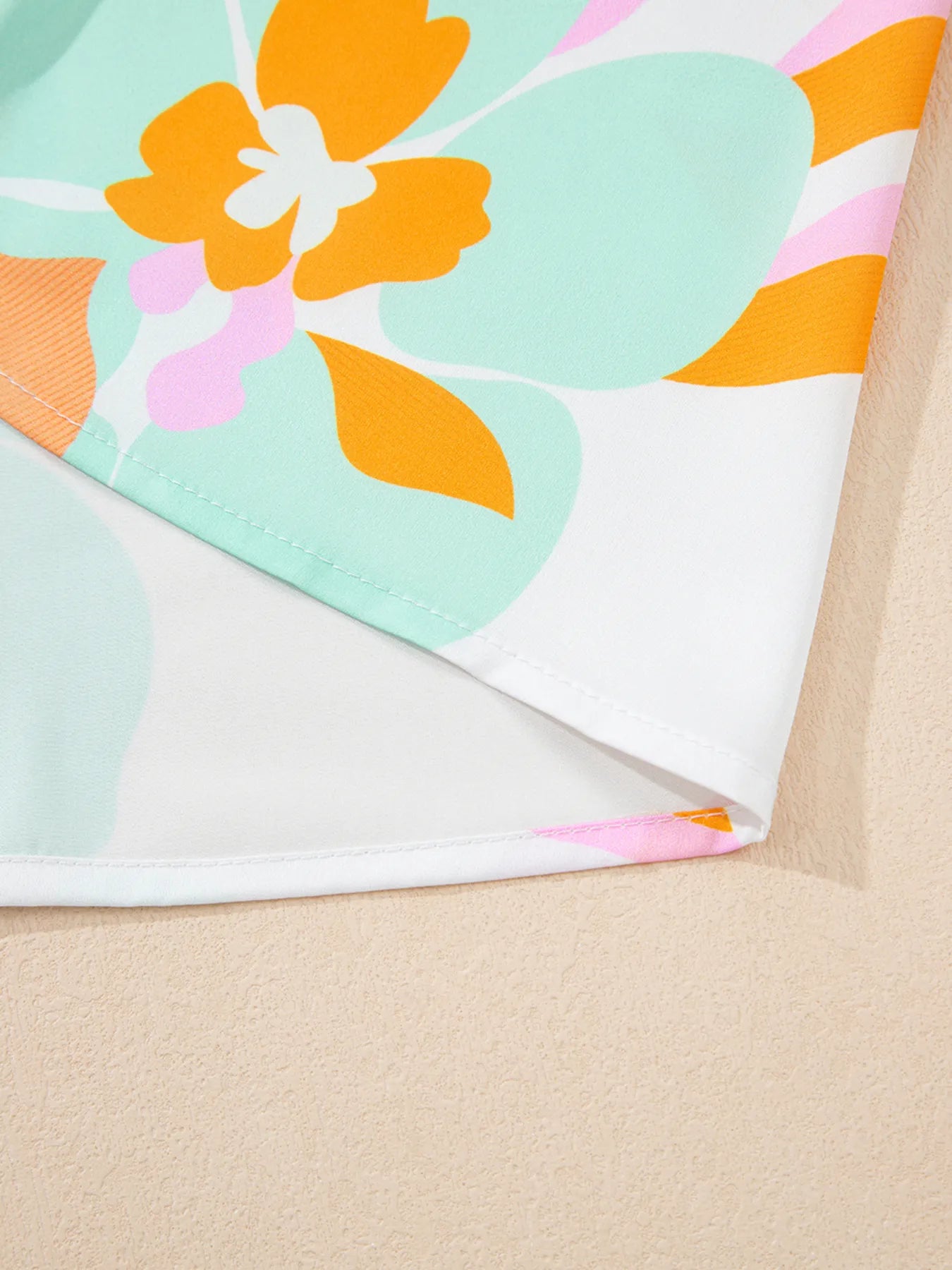 Floral Print Loose Fit V Neck Half Sleeve Blouse