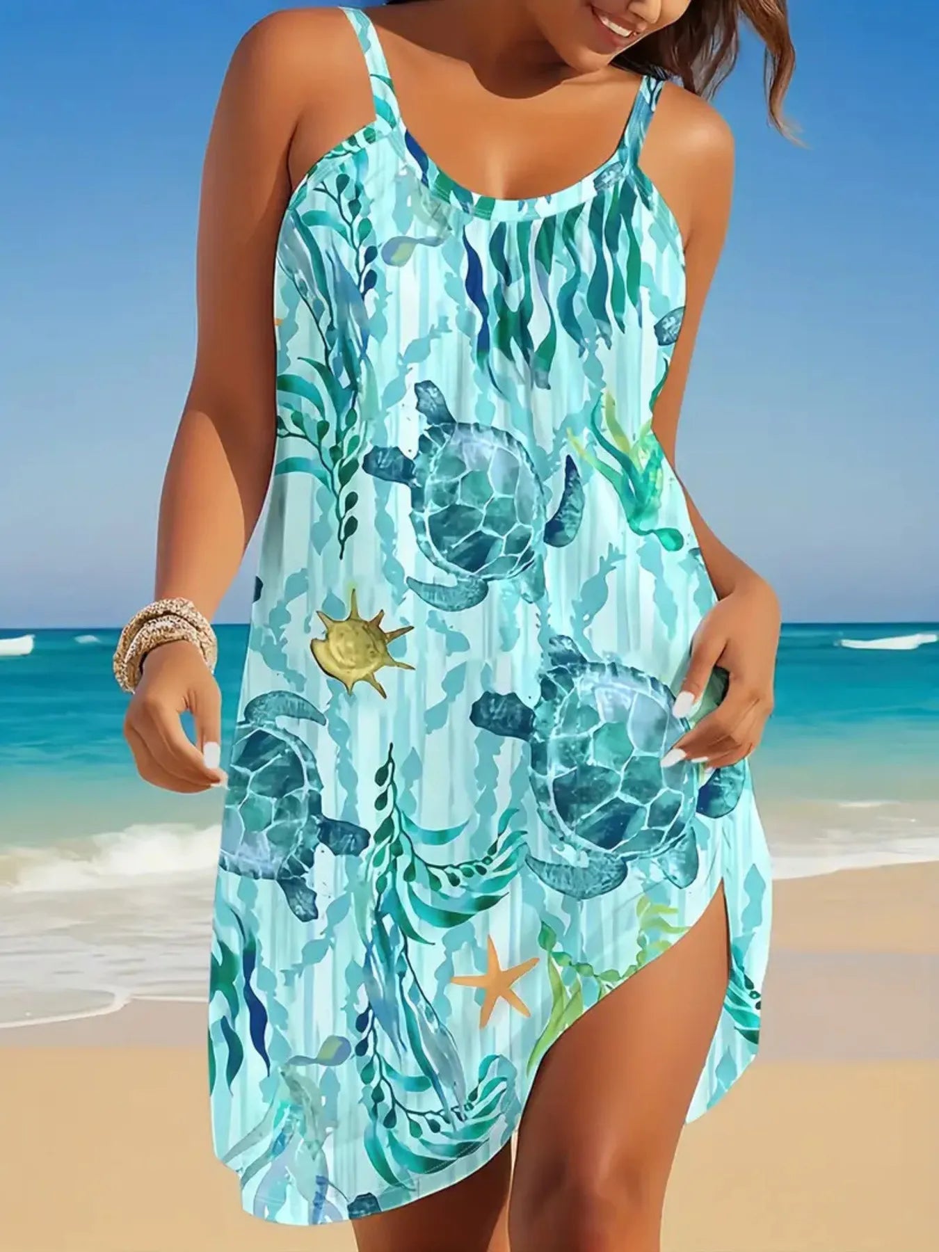 Full Size Printed Scoop Neck Mini Cami Dress Plus Size