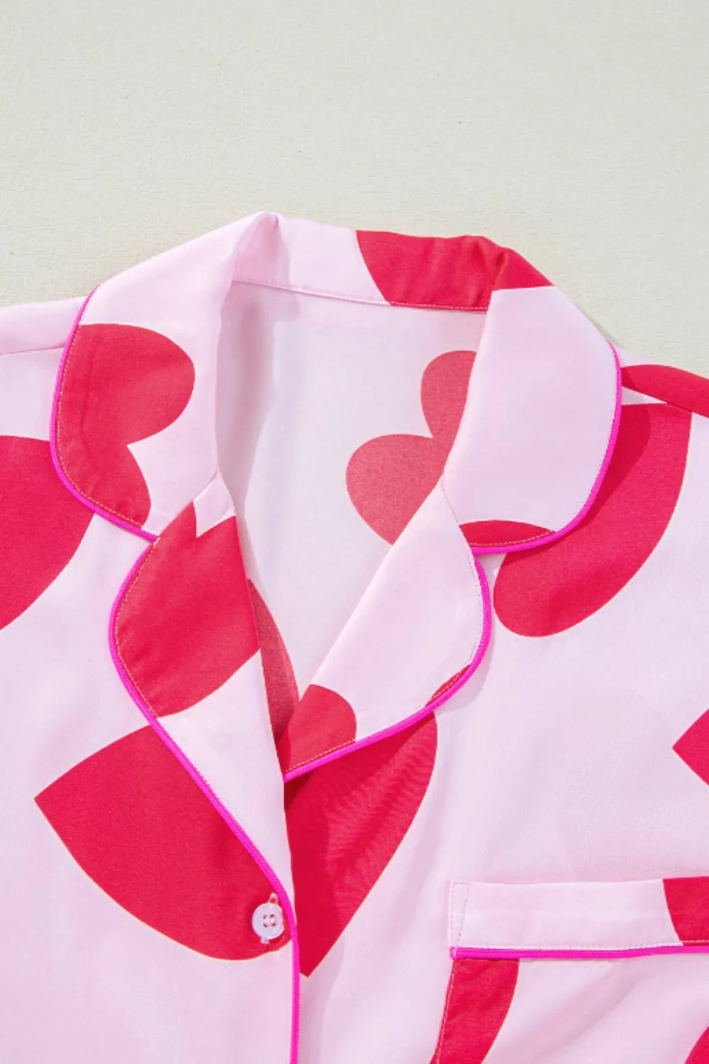 Heart Collared Neck Short Sleeve Top and Pants Lounge Set