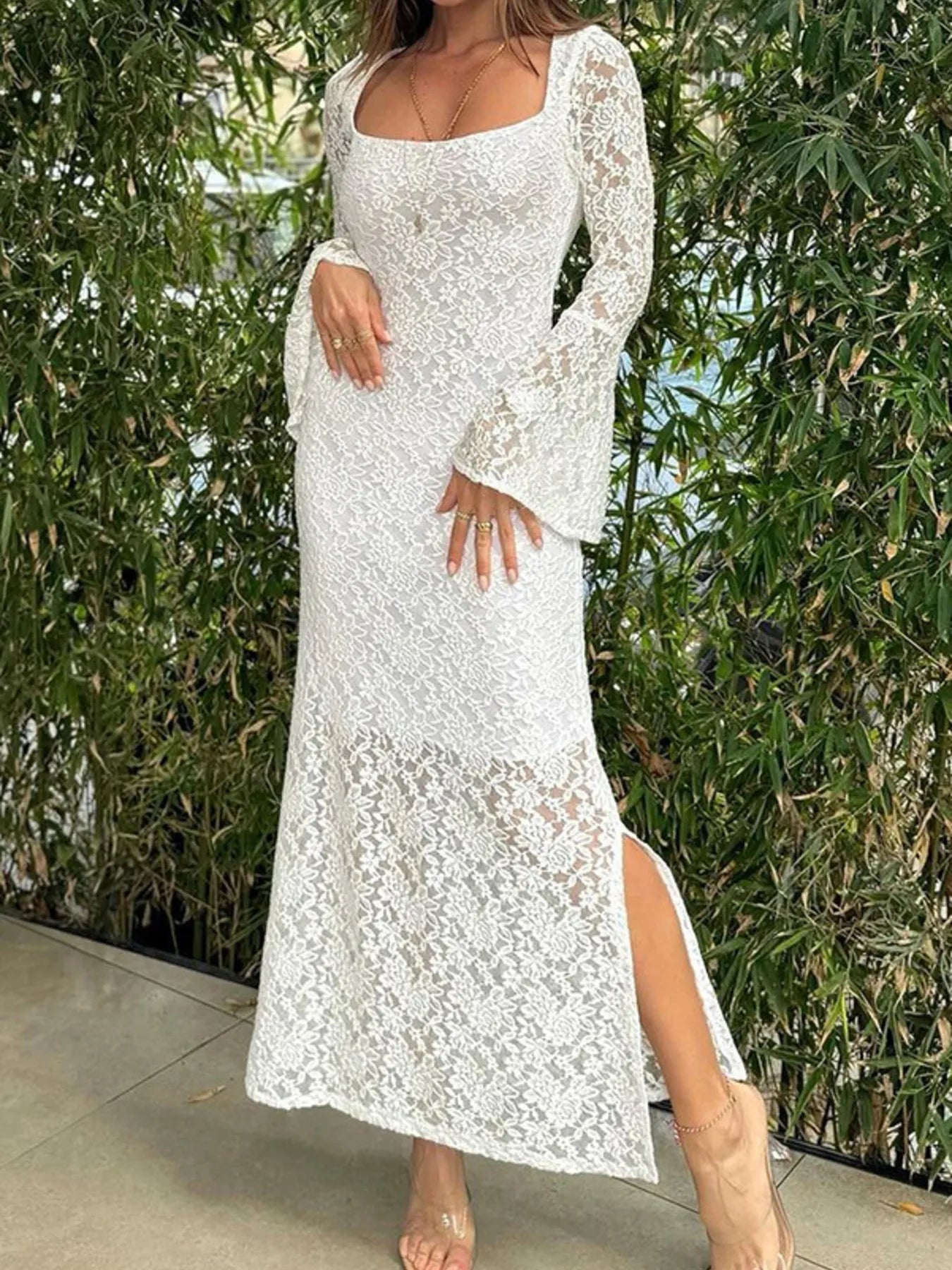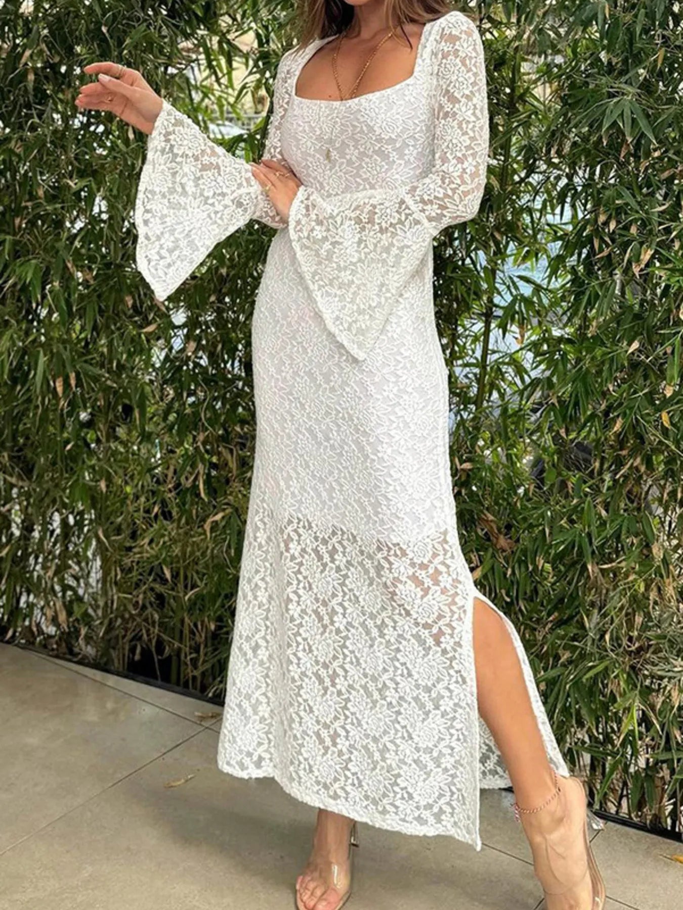 Lace Bell Sleeve Square Neck Bodycon Dress