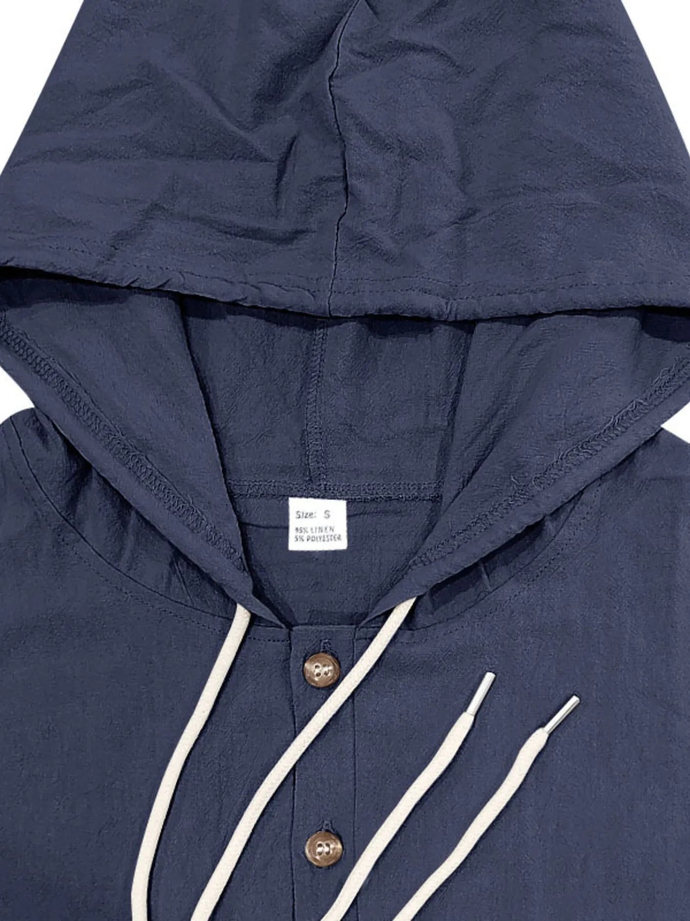 Men's Full Size Drawstring Button Up Hooded Top Plus Size