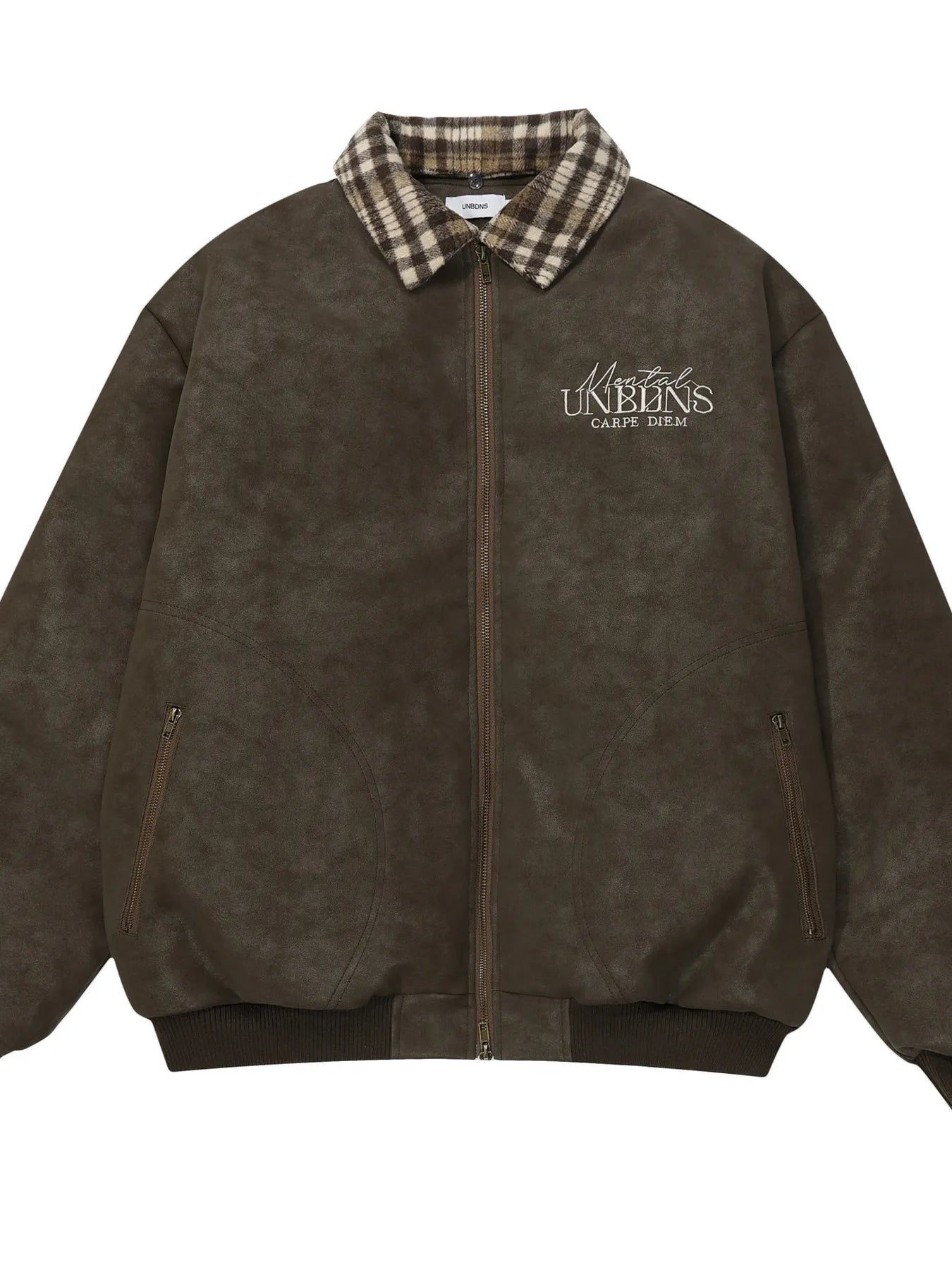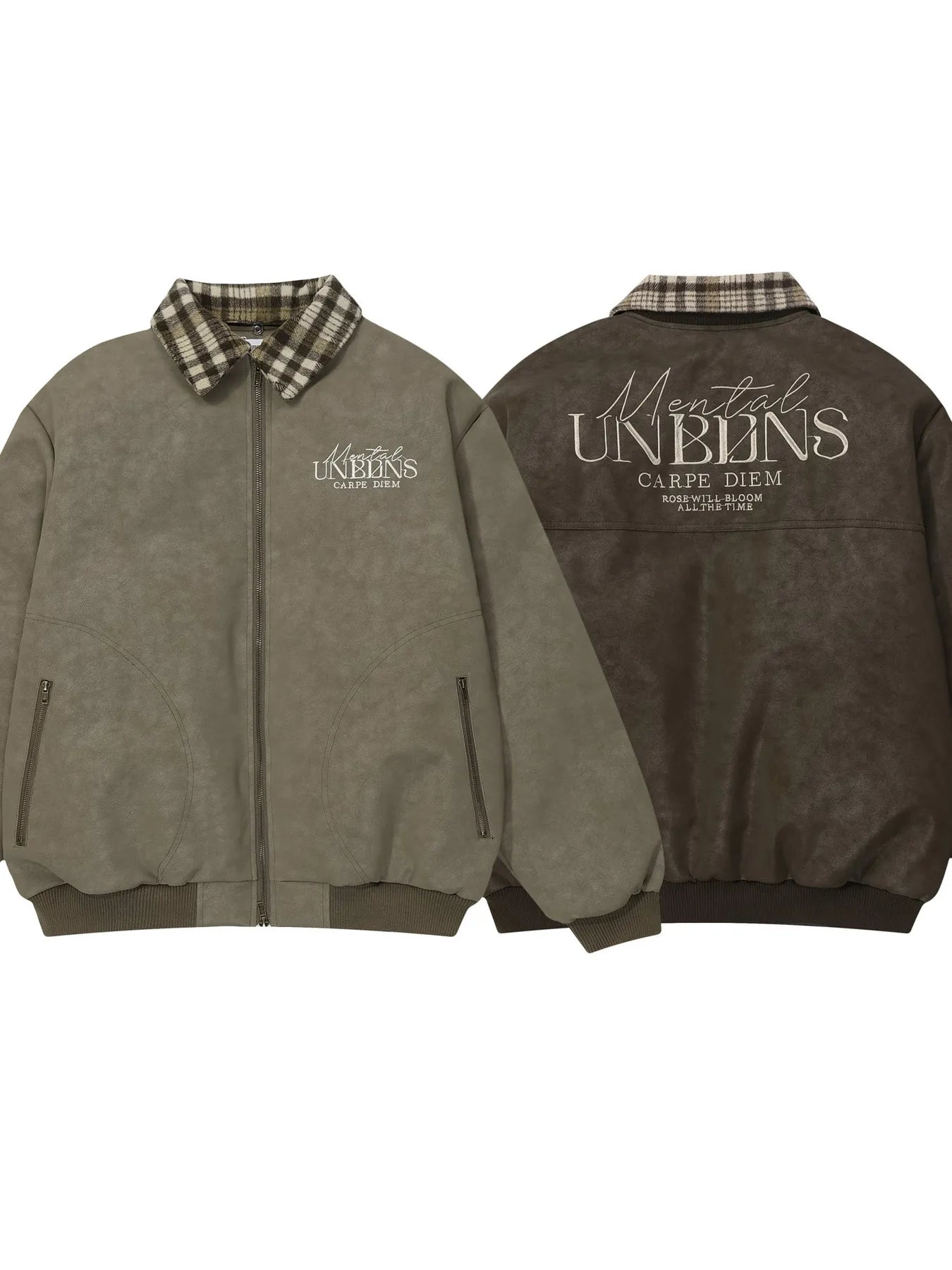 Men's Plaid Collar Detail Zip Up Jacket