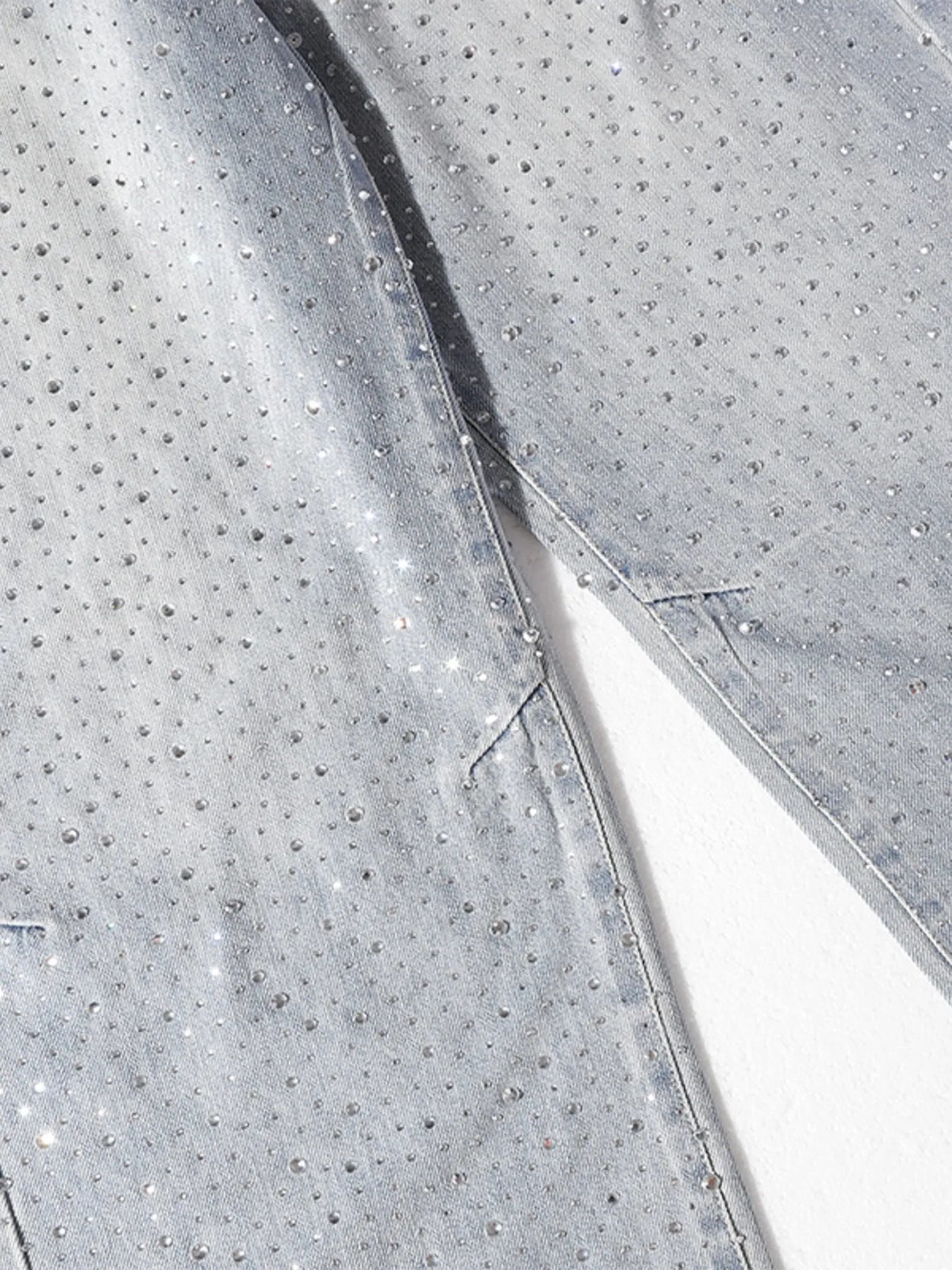 Men's Rhinestone Embellished Wash Relaxed Fit Jeans