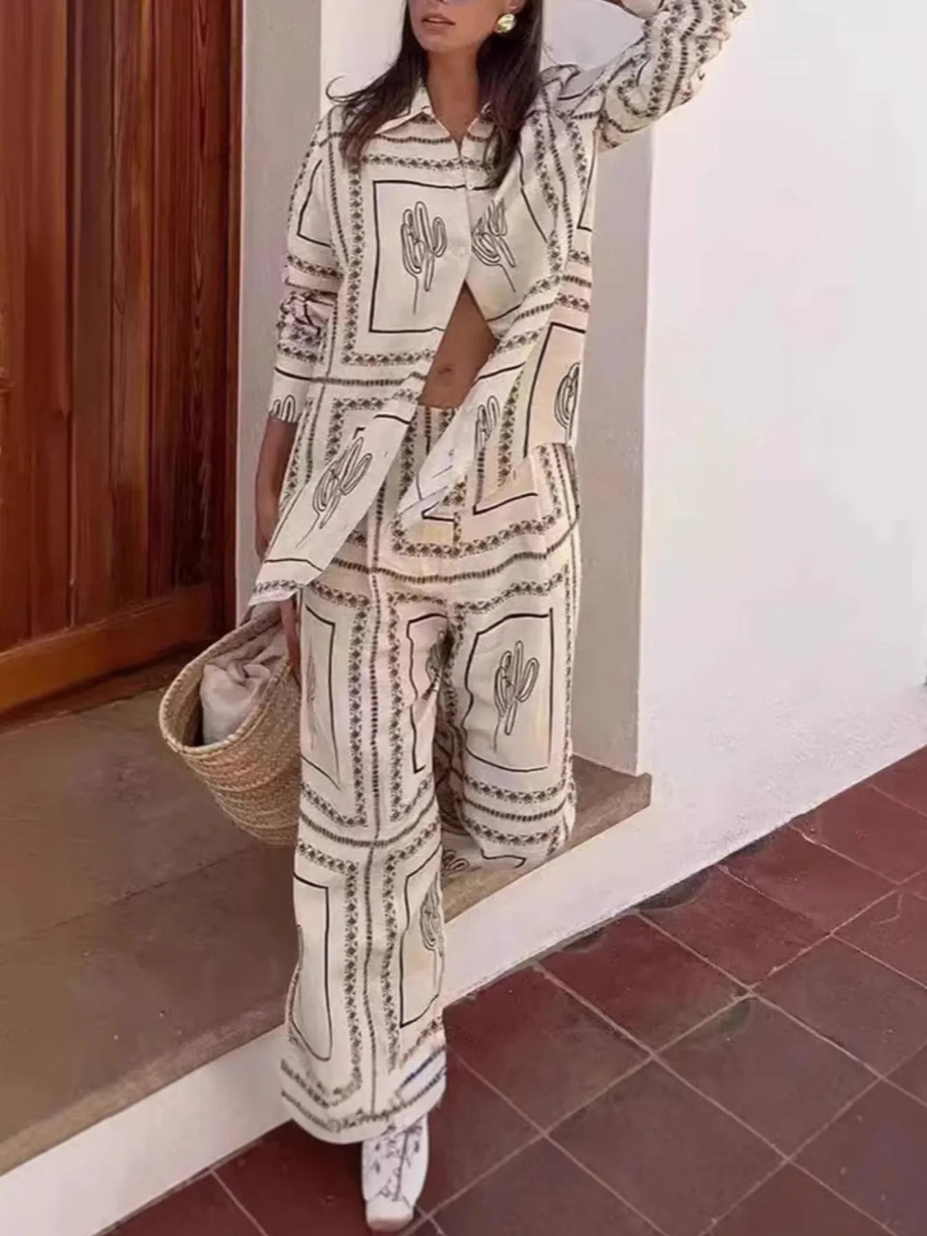 Printed Button Up Shirt and Pants Set